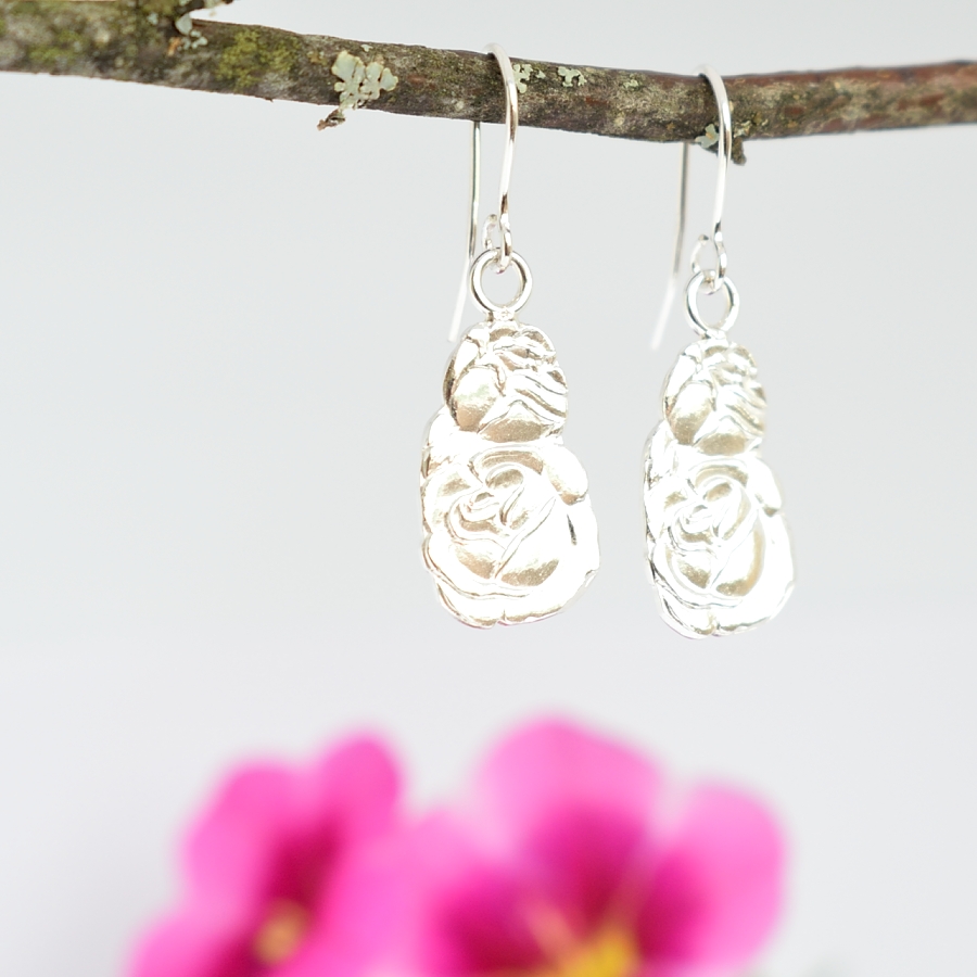 Ruususet-korvakorut on designattu hopeisten ruusuisten lusikoiden varsista.