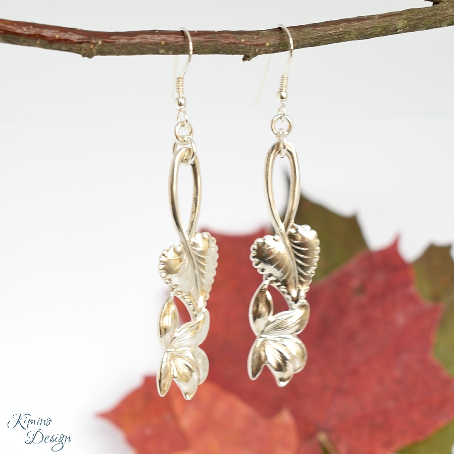 Syklaami-korvakorut, jotka on valmistettu hopeisten kuukausilusikoiden varsista.