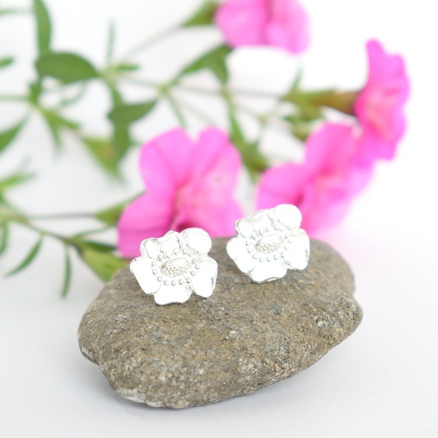 Unikko-tappikorvakorut on muotoiltu hopeisten kahvilusikoiden varsien kukista.