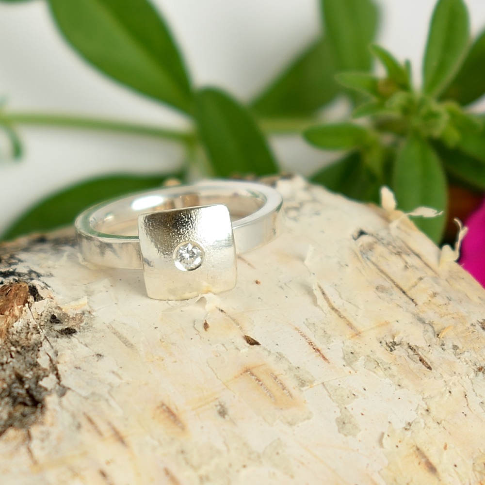 Kaunis Koru kivisormus on puhdistettu ja kiillotettu second hand koru. Selkeä ja pelkistetty kivisormus on Sterling-hopeaa ja sen koko on 16,5 ja paino 5 g. Koristeosan leveys on 9 mm ja sormuksen rungon leveys 3 mm. Kalevala Koru osti Kaunis Korun vuonna 1989, jonka jälkeen Kaunis Korun nimileima oli rekisteröitynä Kalevala Korulle vuosina 1994-2011.