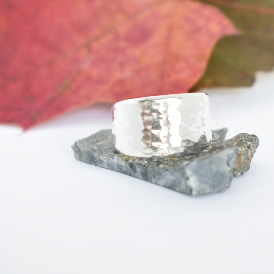 Läike-takosormus, joka on muotoiltu hopeisen sileävartisen lusikan varresta. Sormuksen pinta on kevyesti taottu. Lusikka on alun perin vuodelta 1938. Sormuksen koko on 18 ja leveys leveimmästä kohdastaan n. 11 mm.