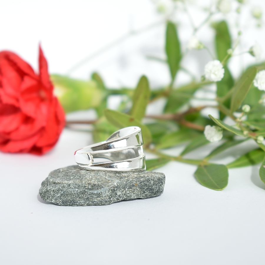 Mariela-haarukkasormus, joka on muotoiltu pienestä, hopeisesta, 2-piikkisestä leikkelehaarukasta. Sormus on leveimmästä kohdastaan 12 mm levyinen ja sen koko on 17,5. Haarukka on alun perin vuodelta 1950.