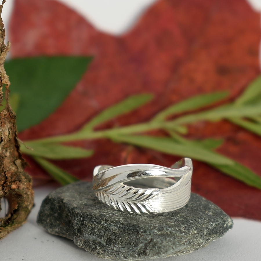 Vilja-sormus, joka on muotoiltu hopeisen Vilja-kahvilusikan varresta. Lusikka on alun perin vuodelta 1964. Sormus on leveimmästä kohdastaan 11 mm leveä. Sormuksen koko on 16,5.